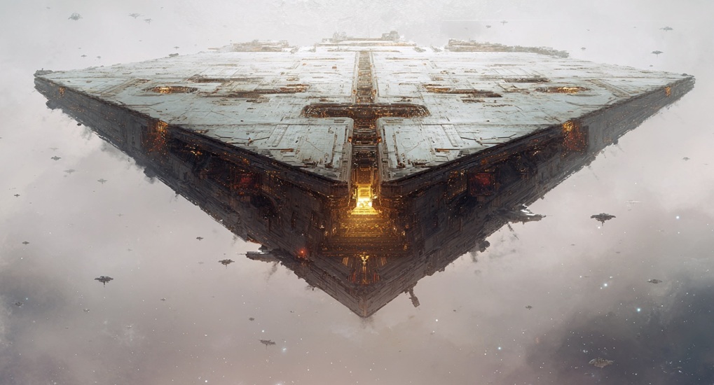 En las profundidades del Eternum, donde incluso los soles más antiguos se han apagado y las órbitas de los mundos colapsan bajo la gravedad del vacío, existe una silueta inmóvil y majestuosa que aún resiste el paso de las eras: el Explorador Oscuro. No es una nave, al menos no en el sentido que los hombres conceden a las máquinas. Es una entidad consciente, un testigo que ha visto morir galaxias enteras y ha contemplado, desde la soledad del abismo, el desmoronamiento de la civilización humana tras la Conjunción Infernal.